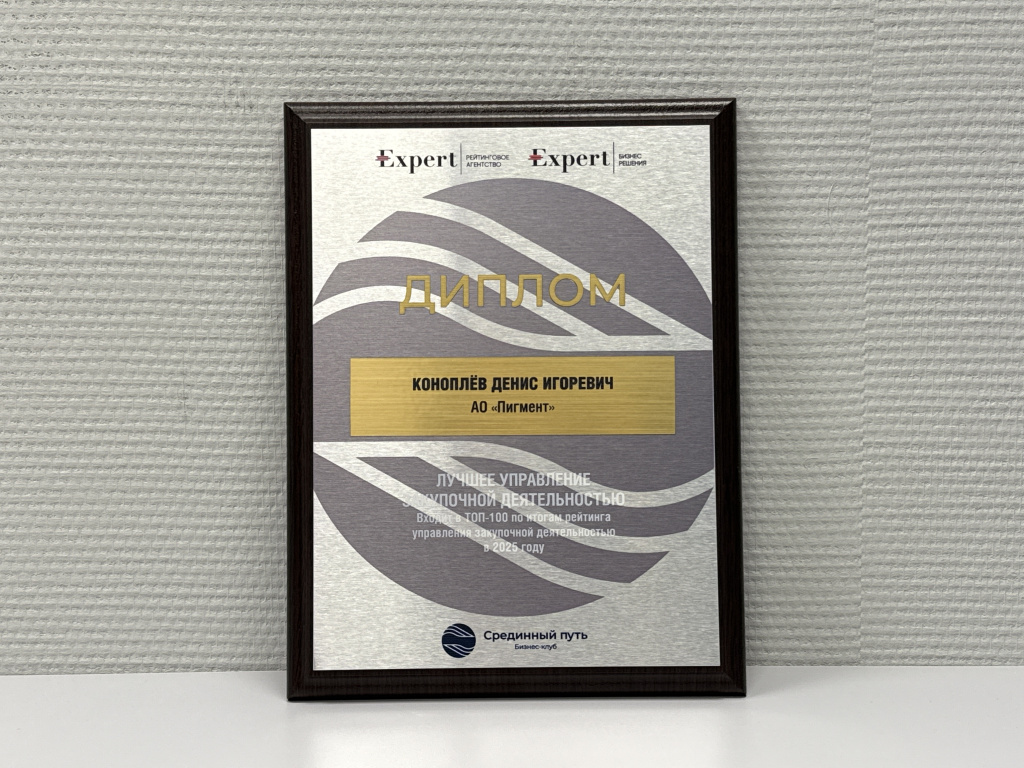 АО «Пигмент» вошло в ТОП-100 лучших закупочных подразделений по версии РА «Эксперт»