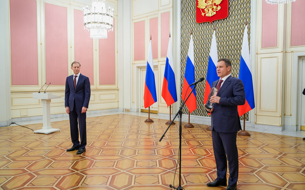 19 октября в Доме Правительства РФ состоялась официальная церемония награждения компаний-лауреатов Премии Правительства РФ в области качества по итогам 2022 года. Заслуженную награду – диплом победителя и приз генеральному директору АО "Пигмент" Андрею Утробину и Управляющему директору АО «Пигмент» Сергею Короткову вручил заместитель Председателя Правительства РФ – Министр промышленности и торговли РФ Денис Мантуров. Премия АО «Пигмент» присуждена в категории организаций с численностью работающих свыше 1000 человек.