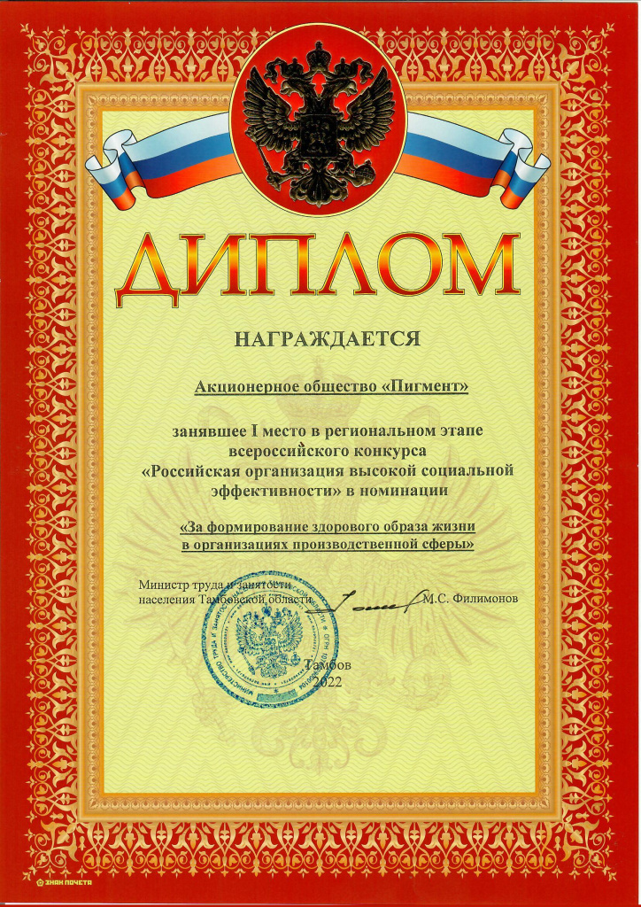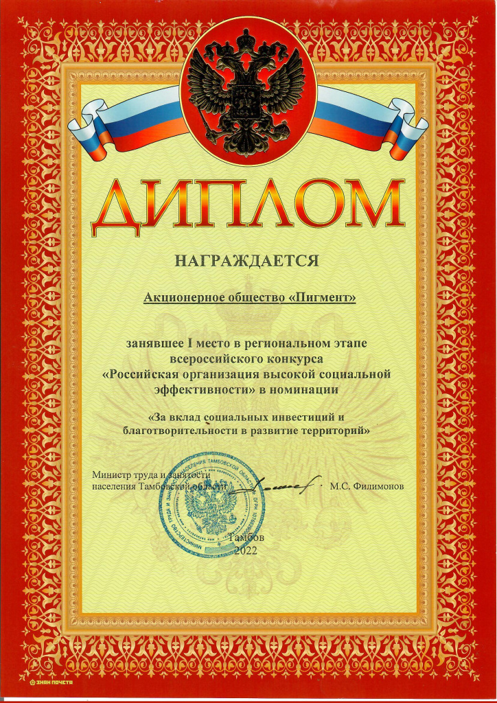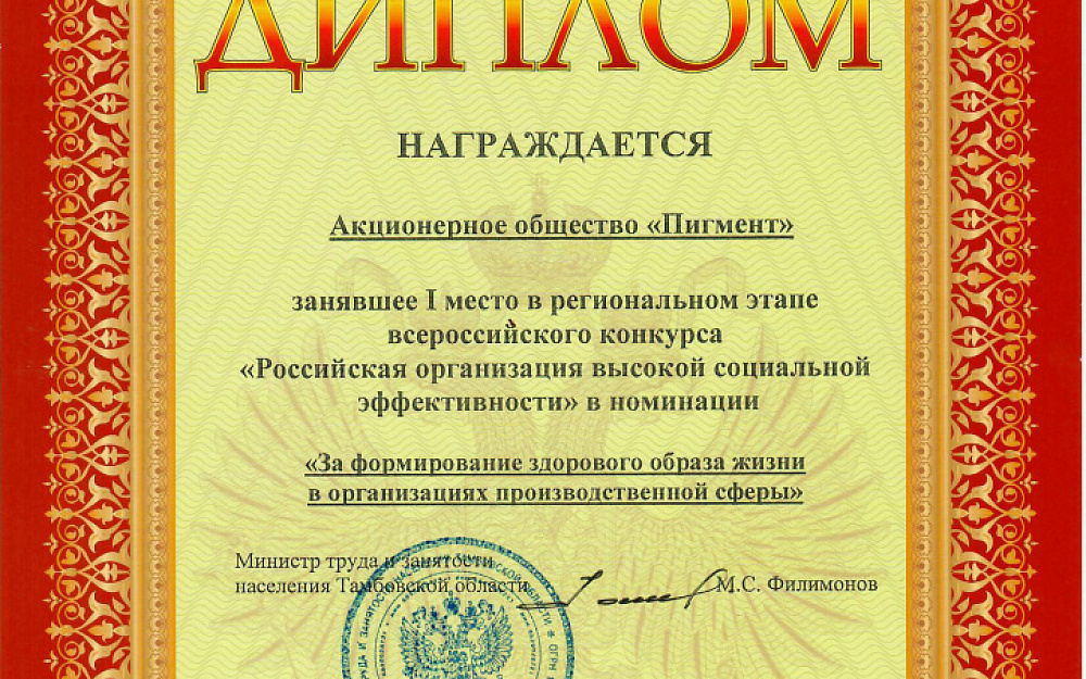 «ПИГМЕНТ» - ПРИЗЕР РЕГИОНАЛЬНОГО ЭТАПА КОНКУРСА «РОССИЙСКАЯ ОРГАНИЗАЦИЯ ВЫСОКОЙ СОЦИАЛЬНОЙ ЭФФЕКТИВНОСТИ»